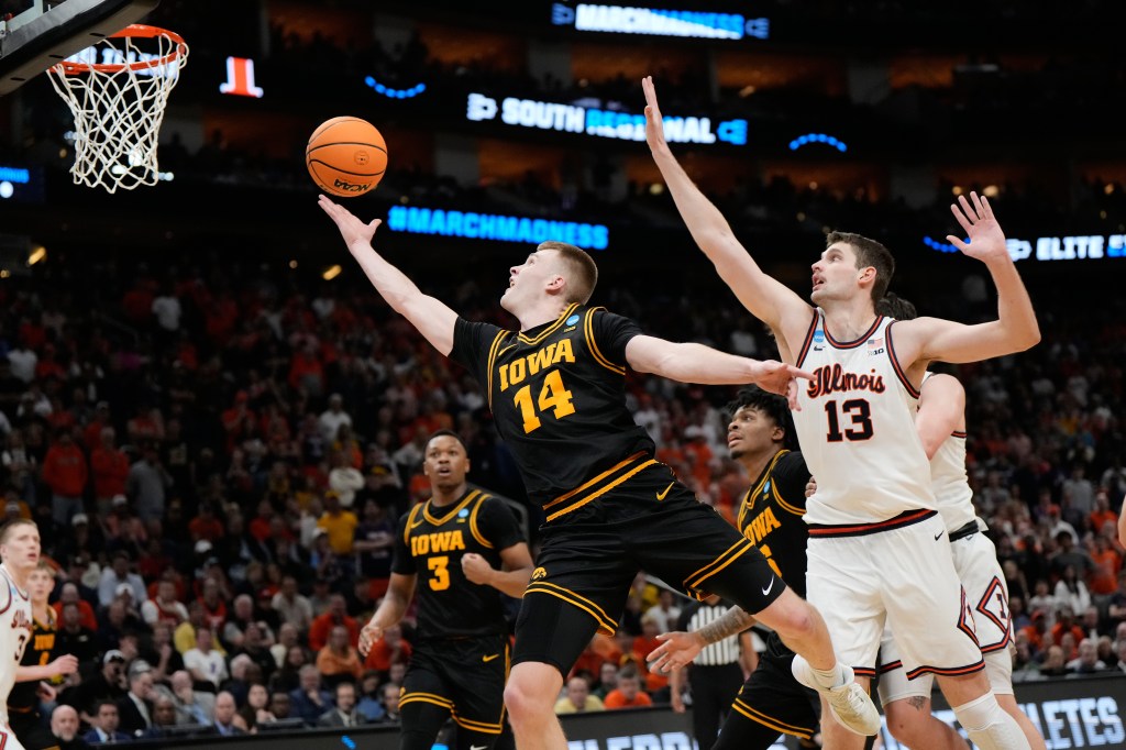 Bennett Stirtz scored 24 points for the ninth-seeded Hawkeyes (24-13), who knocked off top-seeded Florida in the second round as part of an impressive run under first-year coach Ben McCollum, a four-time Division II national champion at Northwest Missouri State. Stirtz played for McCollum there, then followed him to Drake and finally Iowa.